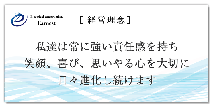 経営理念 PHILOSOPHY 私たちの目的地は『楽しむ会社』です 仕事だからといって我慢ばかりせず、どうせやるなら楽しんで。 休みも家庭も大事にしながら、仕事も趣味のひとつのように前向きに取り組む。 それが私たちのスタイルです。 私たちの航路 ~ our mission ~ ― 常に強い責任感を持つ ー 「責任感は成長の源。だからこそ、無理なく笑顔で」 自分の役割に責任を持つことは、自分自身の成長につながり、お客様や仲間からの信頼を育てます。 ただし、責任を抱えすぎて心が追い詰められてしまっては本末転倒。 そんなときこそ、「笑顔・喜び・思いやりの心」を大切にし、まわりの助けやアドバイスに素直に耳を傾けましょう。 仲間が困っているときには、自分が支える側にまわることも大切。 そうした姿勢こそ、真の責任感を持つ行動です。 そして、仕事の楽しさは、誰かに認められてこそ本物になります。 認められる存在になるために、人として磨き続けましょう。 ― 笑顔、喜び、思いやる心を大切にする ― 「仕事は『こなす』ものじゃなく、楽しむもの」 怒りながらの仕事は楽しいですか? 嫌々取り組む毎日は、誰かの心を動かせるでしょうか? 誰からも認められず、ただこなすだけの仕事に、楽しさはあるでしょうか? もちろん、仕事には時に辛い瞬間もあります。 でも、毎日が辛いと感じる働き方を続けるのは、本来あるべき姿ではありません。 「笑顔」と「喜び」を大切にすること。 それが、自分の心を軽くし、仕事を充実させ、周囲を明るくし、結果として「自分自身が一番楽しくなる」働き方につながります。 「できない人を責める前に『伝え方』を見直す」 「なんでこんなこともできないんだ」と感じたとき、まずは自分の伝え方に問題がなかったか、立ち止まって考えてみましょう。 失敗した人に対して、責めたり見下したりするのではなく、笑顔で「次は頑張ろう」と声をかけること。 それが、人を前向きにさせる“思いやりの力”です。 もし誰かが精神的に落ち込んでいそうなら、ほんの一言でもいいので声をかけてあげてください。 言葉の力は、思っている以上に人を支えます。 身体の疲れよりも、心の疲れは深刻です。放っておくと、気づかぬうちに心の健康をむしばんでしまいます。 見返りを求めずに、相手のことを思って行動する。 それが「思いやる心」です。 そしてその優しさは、きっといつか、形を変えて自分に返ってきます。 ― 因果応報。思いやりは巡り、信頼の輪をつくっていきます。 ― 日々進化し続ける ― 「もう成長しなくていいと思いますか?」 人は、何歳になっても成長できる。 成長するたびに、心も器も広がっていきます。 だからこそ、年齢や立場に関係なく、常に学び続ける姿勢が大切です。 そして、成長は一人ではできません。 仲間と支え合い、会社というチームの中で、共に成長していくこと。 それが、人としても社会人としても、大きな力になります。